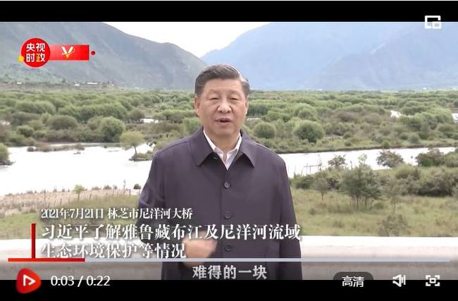 Dne 21. července v poledne se Xi Jinping (Si Ťin-pching), generální tajemník Ústředního výboru KS Číny, který provedl inspekci v Tibetské autonomní oblasti Xizang (Si-cang), zastavil, když přejížděl most přes řeku Niyang, aby zkontroloval ekologické prostředí řeky Brahmaputra a povodí řeky Niyang. Xi Jinping zdůraznil, že systém řeky Brahmaputra je vzácným kusem zelené půdy a zelených plic a jeho ekologie je stále velmi křehká. Musíme se zaměřit na ochranu a společně dobře chránit tuto „čistou zemi“.