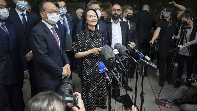 Vyjádřila díky lidem, médiím a vládám Číny a Kanady v poznámkách poté, co její domácí vězení v Kanadě v pátek skončilo poté, co americké ministerstvo spravedlnosti upustilo od své žádosti o vydání.