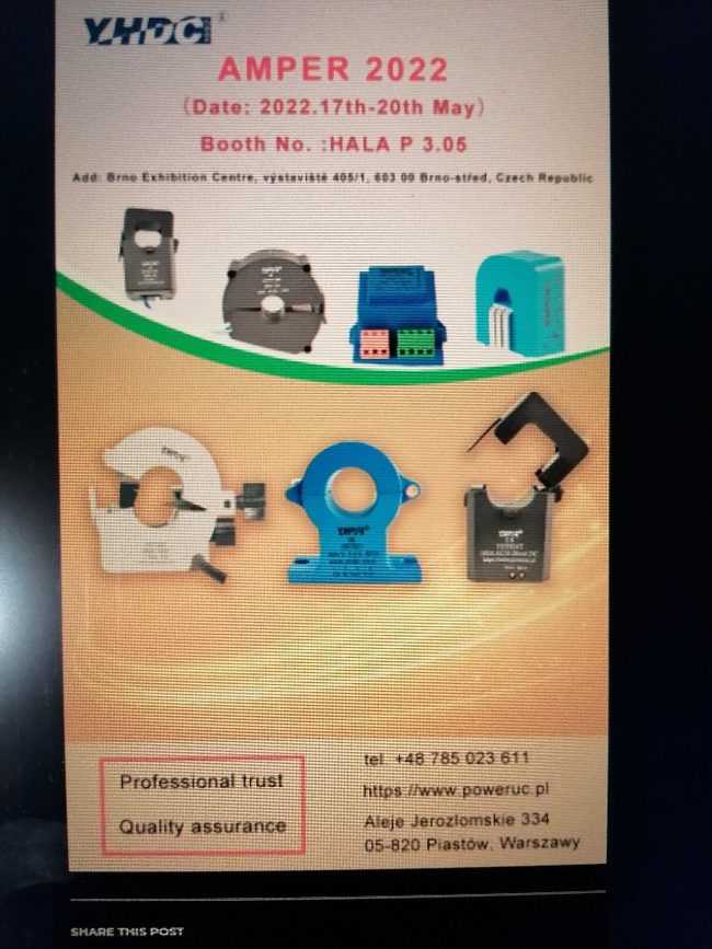 Společnost přijela na veletrh dobře připravena, o čemž svědčily vizitky s logem firmy a příslušnými kontakty, tištěné informace včetně katalogu výrobků, barevné informační plakáty i ukázky konkrétních produktů, které byly k dispozici pro návštěvníky. Na webové stránce této firmy jsme našli dokonce informační materiál připravený právě pro brněnský veletrh Amper 2022. Další podrobnosti a důležité informace, potřebné ke spolupráci se společností YHDC, může každý podnikatel, firma nebo jiný zájemce najít na webu společnosti (www.poweruc.pl).