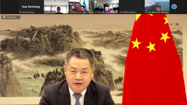 Na 49. zasedání Rady OSN pro lidská práva se 18. března diskutovalo o otázkách týkajících se Venezuely. Jiang Duan (Ťiang Tuan), velvyslanec stálé mise Číny při Úřadu OSN v Ženevě a dalších mezinárodních organizacích ve Švýcarsku, ve svém projevu vyzval Spojené státy, aby přestaly porušovat lidská práva venezuelského lidu...