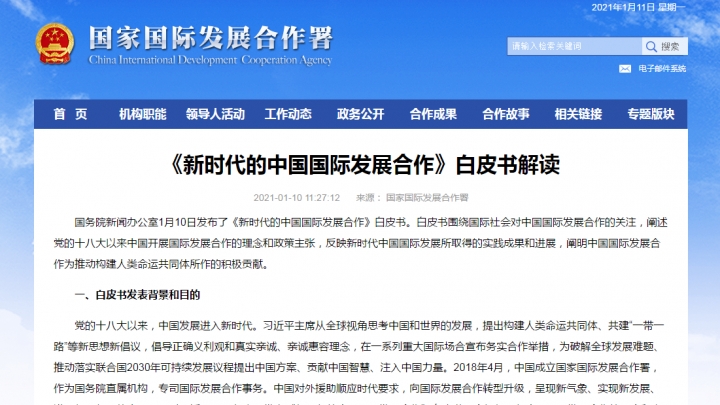 Informační kancelář čínské Státní rady zveřejnila 10. ledna bílou knihu „Čínská mezinárodní rozvojová spolupráce v nové éře“...