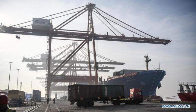 Čínský přístav v zálivu Beibu zaznamenává rekordní propustnost kontejnerůNANNING 28. prosince (Xinhua) - Přístav v zálivu Beibu v jihočínské Zhuangské autonomní oblasti Guangxi poprvé v pondělí překonal roční přepravní kapacitu 5 milionů standardních kontejnerů TEU.Fotografie pořízená 28