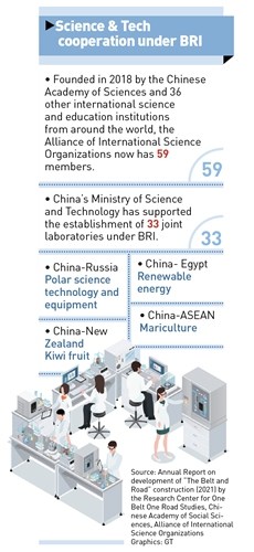 Všude podél BRI roste spolupráce na vědě a vývoji, aby Čína v těchto zemích vyvolala kvalitní růst jako u sebe a zapojila do společného budování technologické budoucnosti i místní talenty. V pásu BRI rostou vědecké parky a společné laboratoře. Čína u sebe z BRI hostila podle výroční zprávy o této spolupráci 180 000 vědců a inženýrů a nalákala k práci v Číně 8 300 mladých zahraničních vědců. S osmi zeměmi jedná o zřízení národních vědeckých parků jako s Mongolskem, Vietnamem a s Jižní Afrikou.