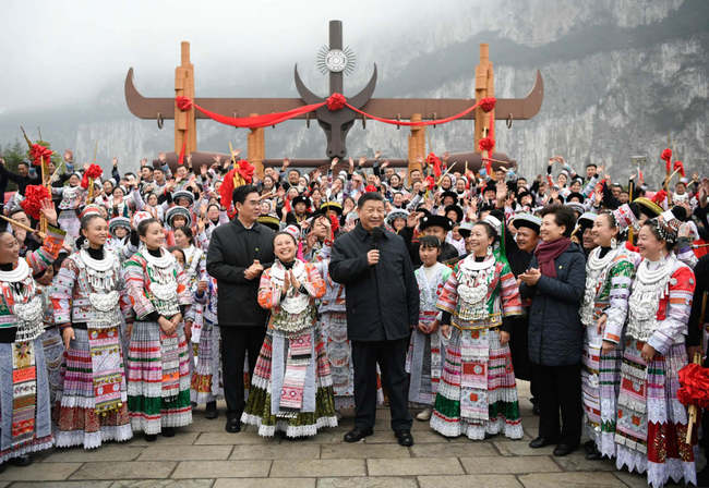 Na veřejném náměstí ve vesnici Huawu (Chua-wu) národnostní menšiny Miao (Miao) prezident Xi hovořil s vesničany, kteří se účastnili slavnostních akcí, a popřál šťastný nový rok lidem všech etnických skupin po celé zemi.