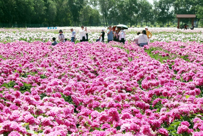 Pivoňky kvetou v Urumči v čínské Ujgurské autonomní oblasti Xinjiang a lákají turisty, kteří je sem přijíždějí sledovat.