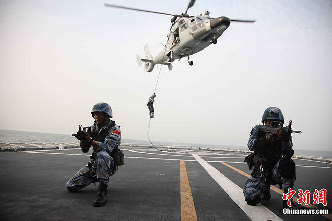 V reakci na výzvu OSN vyslala čínská vláda v prosinci roku 2008 do Adenského zálivu a somálských vod první flotilu námořního doprovodu, aby se zúčastnila boje proti somálským pirátům. Poté, co doprovodná formace čínského námořnictva dorazila do plánované mořské oblasti, některé zahraniční obchodní lodě raději počkaly dva nebo tři dny na doprovod čínských válečných lodí. Některé lodě záměrně změnily trasu, aby se dostaly do doprovodného týmu čínského námořnictva. Obchodní lodě, které neměly čas se přihlásit, jednoduše následovaly čínské námořní lodě…