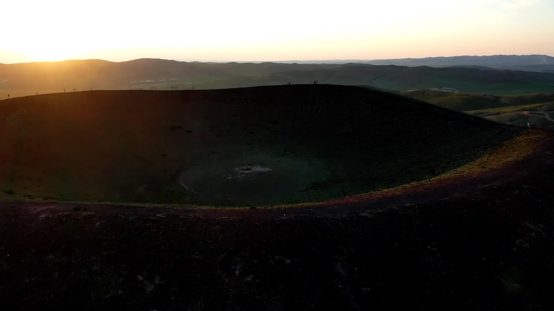 Letecký pohled na skupinu sopek na pastvinách, které vznikly před více než 100 miliony lety, připomíná pec alchymistů