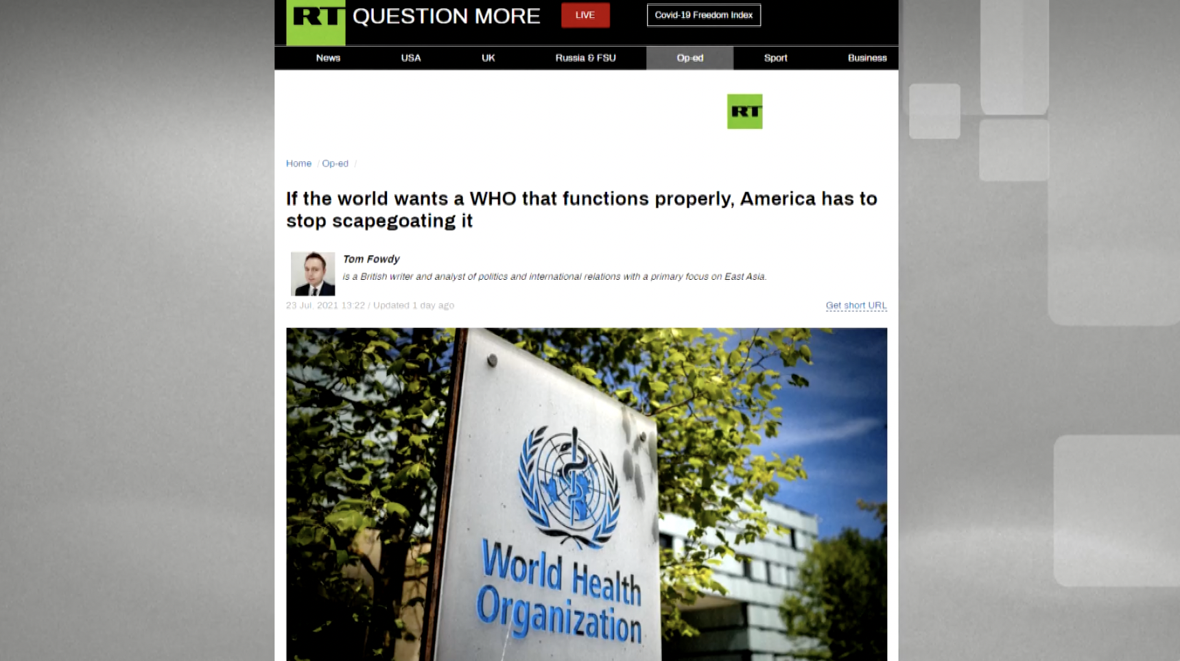 Britský učenec: Lži vytvořené USA a politizace zasahují do sledování zdroje nového koronaviru a do práce WHO