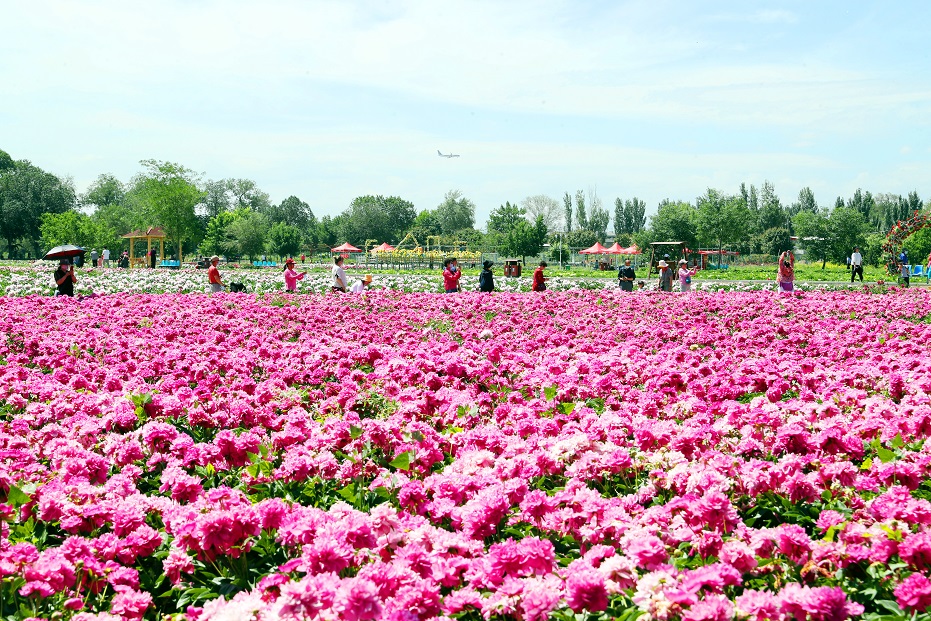 Pivoňky kvetou v Urumči v čínské Ujgurské autonomní oblasti Xinjiang a lákají turisty, kteří je sem přijíždějí sledovat