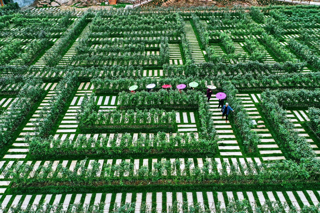 Zemědělci v Yidu v provincii Hubei použili k vytvoření rostlinného bludiště více než 70 druhů růží. Dokážete najít cestu ven?