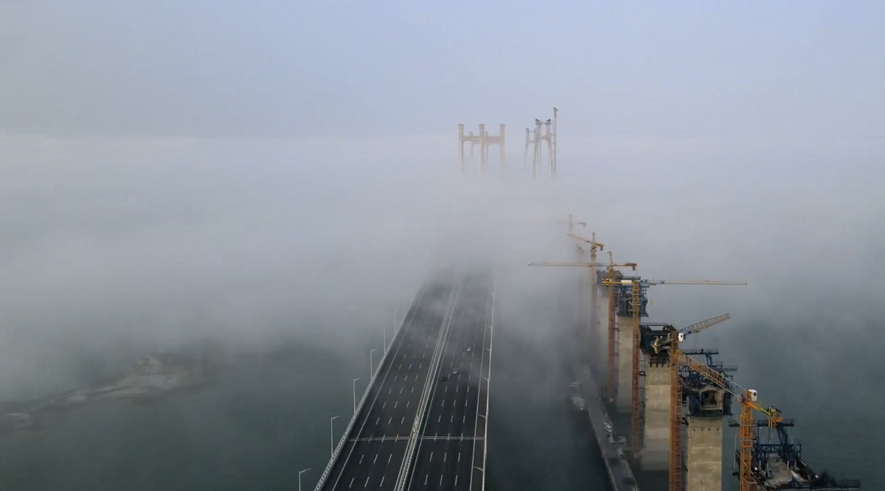 Není to zvláštní efekt, tento most přes moře se vznáší nad mraky