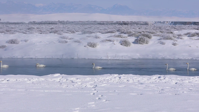 V poslední době je v mokřadním parku Labutí pramen v okrese Yining v prefektuře Ili v provincii Xinjiang nádherná scenérie jinovatky a park je jako pohádková země.