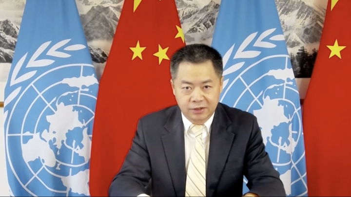 Zástupce čínské delegace OSN v Ženevě Jiang Duan (Ťiang Tuan) na 47. zasedání Rady pro lidská práva Organizace spojených národů a dialogu...