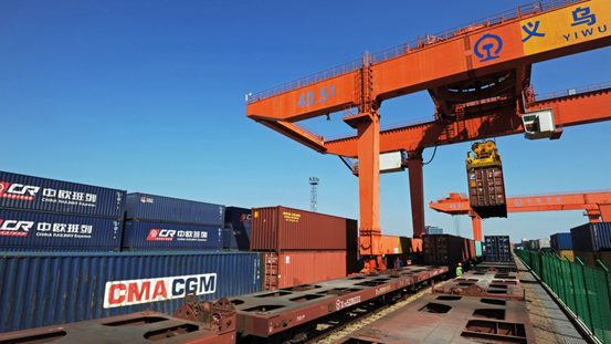Fotografie pořízená 25. října 2019 ukazuje ceremoniál příjezdu prvního nákladního vlaku Čínského železničního expresu (Yiwu-Liege) Alibaba eWTP Cainiao z východočínského Yiwu do belgického Liege