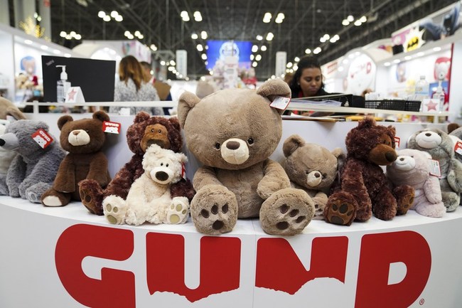 Americký dovoz z Číny v roce 2020 prudce vzrostl i přes cla a pandemii: médiaVycpané hračky Gund jsou vystaveny na stánku společnosti na veletrhu hraček 2020 v New Yorku v New Yorku, USA, 25. února 2020