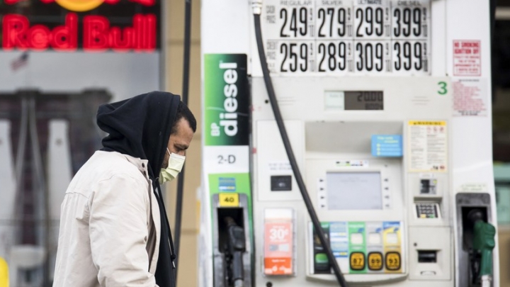 Nejistoty, které zůstanou na energetickém trhu v důsledku COVID-19: Americká energetická informační správa (EIA)Muž s obličejovou maskou prochází kolem plynového čerpadla na čerpací stanici v Brooklynské čtvrti v New Yorku, Spojené státy, 20