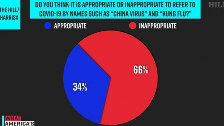 Průzkumy veřejného mínění ukazují, že většina Američanů je proti Trumpovu označení „čínský virus“ a „Kung-fu chřipka“Podle zprávy The Hill ze 14